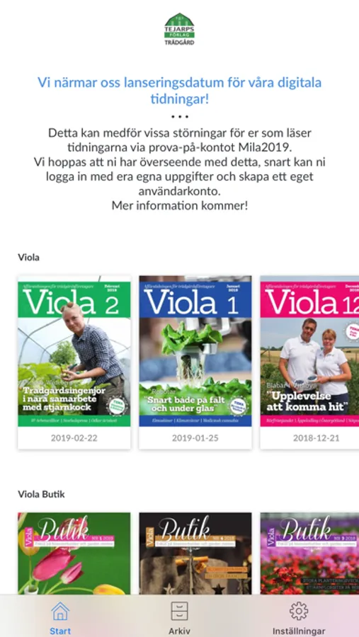 Trädgård ger dig som prenumerant på Viola, Viola Butik och Tidskriften Landskap en digital läsupplevelse i din mobil, på din dator eller läsplatta. Du får tillgång till innehållet i ett lättläst format eller i form av talsyntes.