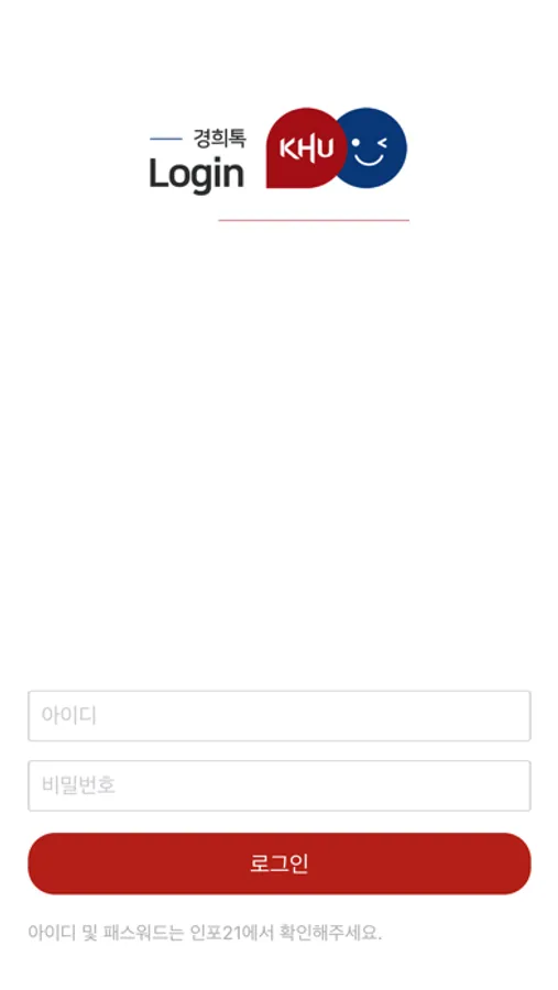 로그인 계정은 인포21의 ID/PW와 동일합니다.
