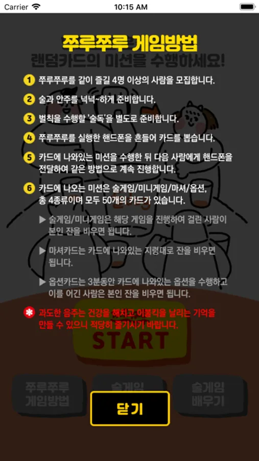 다양한 게임은 기본! 흥미진진한 벌칙과 미션, 웃음 터지는 옵션까지! 올인원 술자리 게임!!