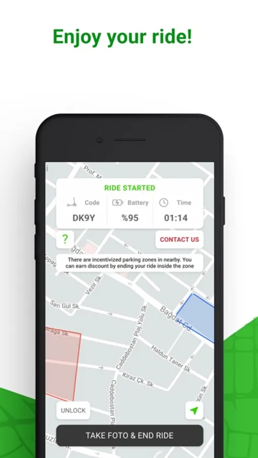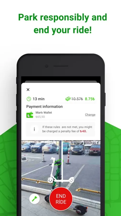- When you want to end your ride, park according to the rules and end your ride by taking a photo of the entire vehicle (scooter, mobilet, moped).