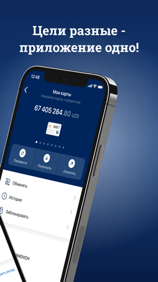 Самый простой и безопасный доступ к вашим счетам и картам. В любой момент вы можете проверить, сколько осталось денег на вашей карте, пополнить счет мобильного телефона, открыть онлайн вклад и сконвертировать национальную валюту в иностранную.
