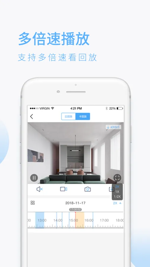 支持摄像头直播,人脸识别,移动报警推送,云存储,报警回放,录像回放等功能。