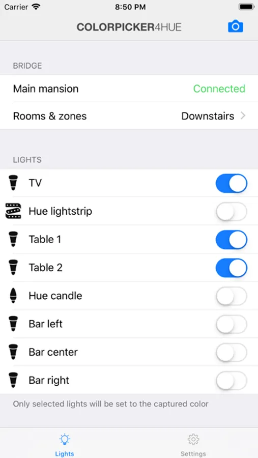 Of course, you can decide for yourself exactly which lights will be used. And you can easily swipe between the camera screen and the lights list if you want to make changes.
