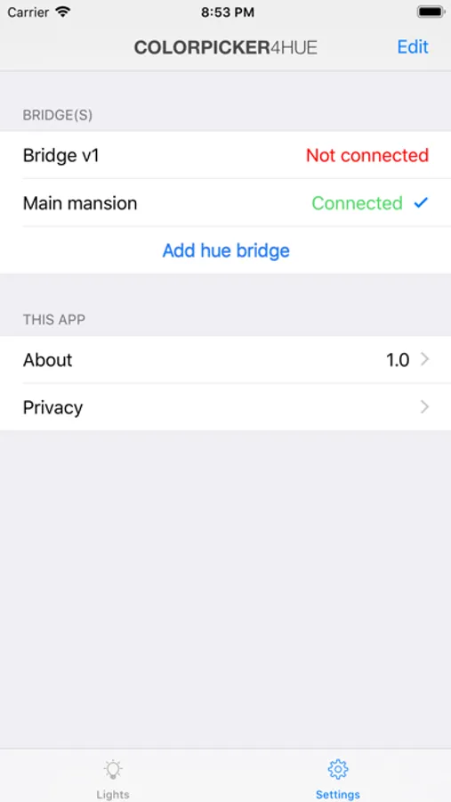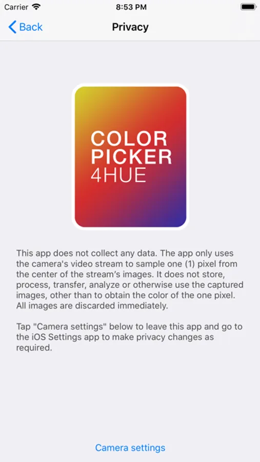 You want to match the color of your hue lights to the color of your curtains, your carpet, or even your coffee cups? This app will let you do that. Just use your iPhone camera to point at ordinary objects and 'click': your lights will be set to the captured color. It's that easy!