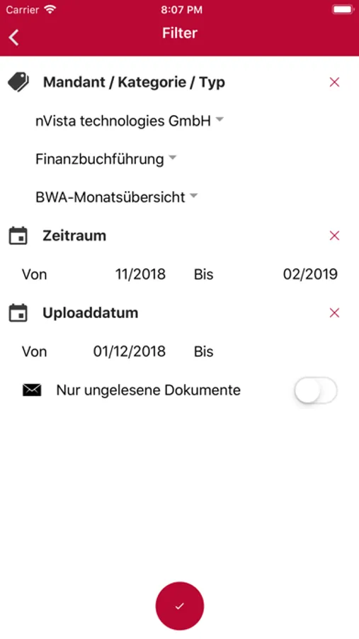 Ihre im Archiv des Simba Dokumentencenters nach Kategorie, Typ und Zeitraum organisierten Dokumente können mit den Suchfunktionen der App bequem abgerufen werden.