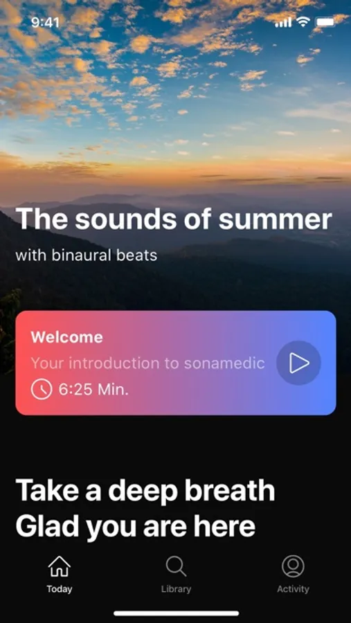 A warm welcome to sonamedic. Great to see you here! Live a more relaxed life, sleep better and learn to focus. Even if you have never meditated before. Develop a better attitude towards life with sonamedic - simply by listening. With the unique combination of guided relaxation exercises, specially composed music and binaural beats. After completing a subscription, you can test sonamedic for a few days for free. With sonamedic it is easy to integrate mindfulness into your life.