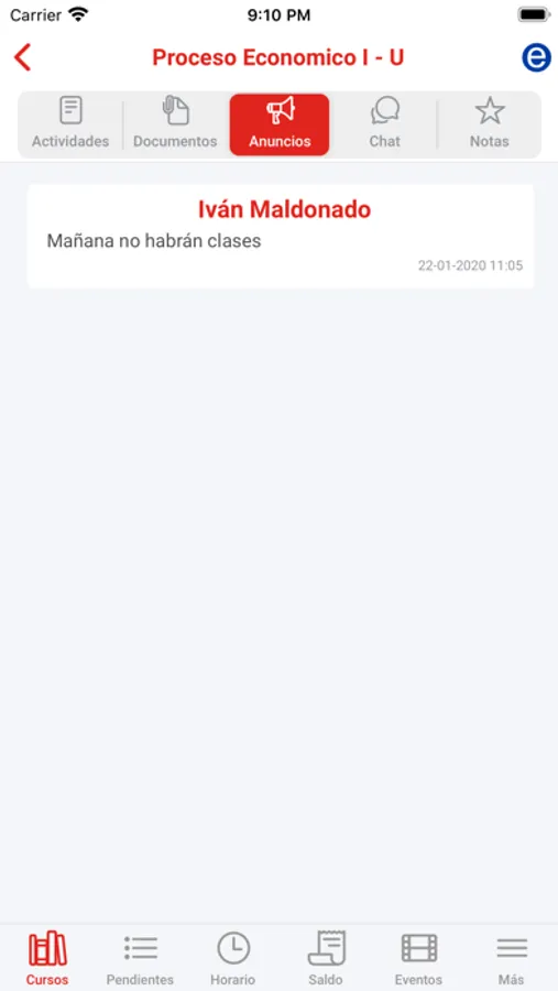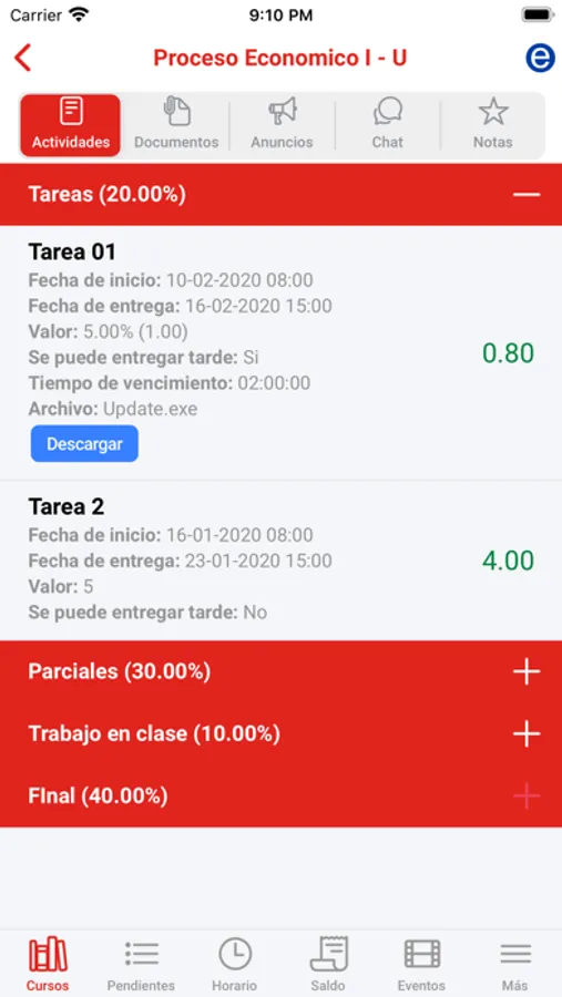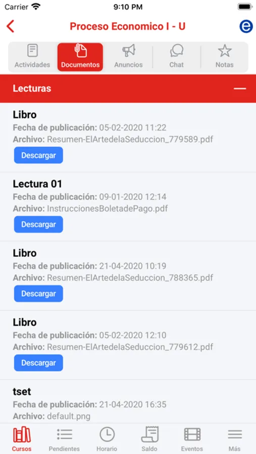 - Descarga de documentos compartidos por el catedrático o auxiliar del curso