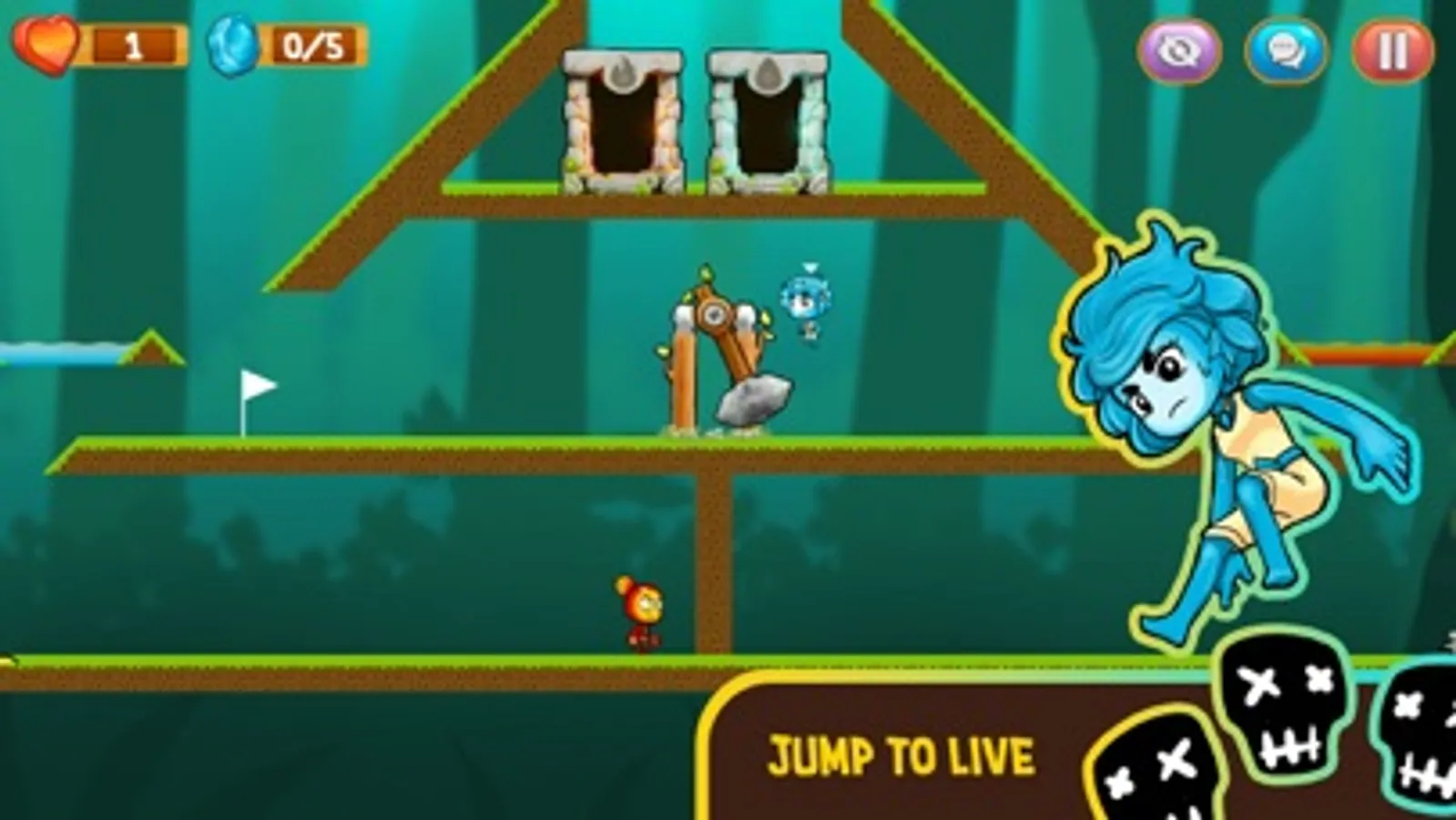 Once upon a time, in a peaceful village, quiet. There is a nice couple named Jim and Marry. The boy is very kind, honest. And the girl is very beautiful and gentle. They became attached to each other, hand in hand like the picture anywhere. Whenever I see this person, I see the other person along. Their love makes people around the region feel desired. Suddenly one day, a Witch appeared with supernatural magic, she did not believe in love, she did not believe there is love can not be divided. With her magic, she turns Jim into Fire boy and Marry into Water girl so they can not be together, can not exchange love.