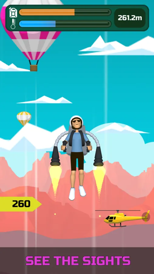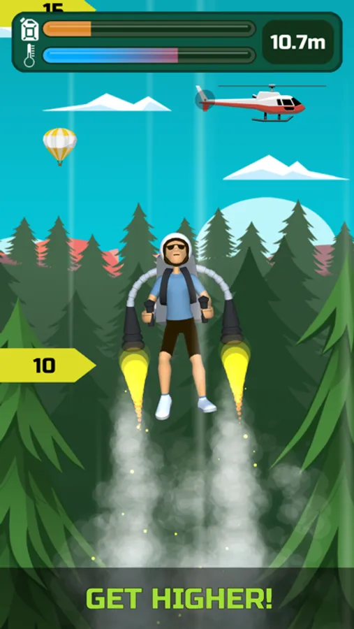 * Press and hold to launch your jetpack, release in time before it overheads and repeat until your fuel runs out.