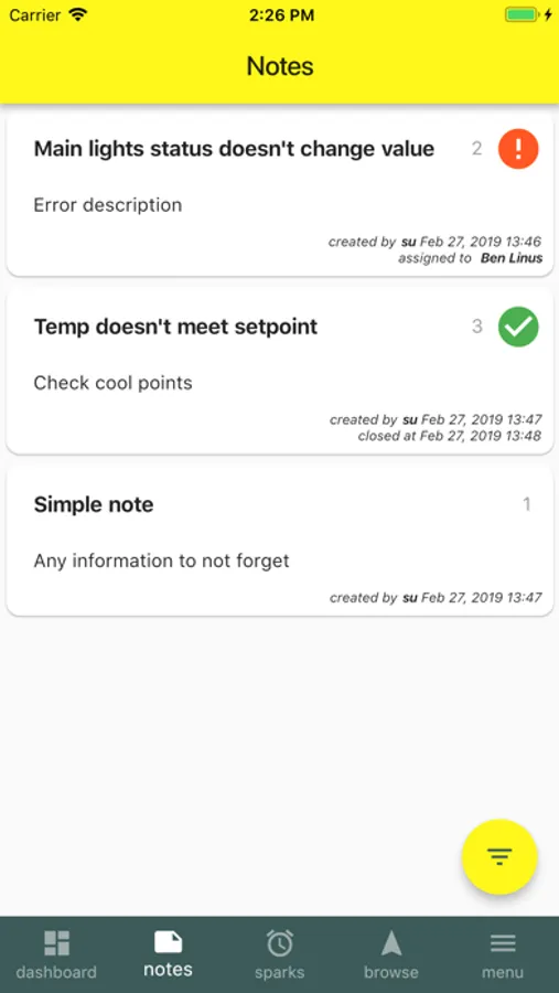 Consists of multiple views such as notes, sparks, history, browser for site - equipment - points and their haystack tags.