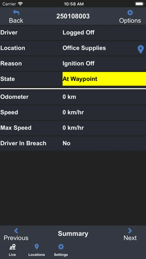 Driver details: Tapping on vehicle icons will show current driver if driver login is enabled in vehicle.