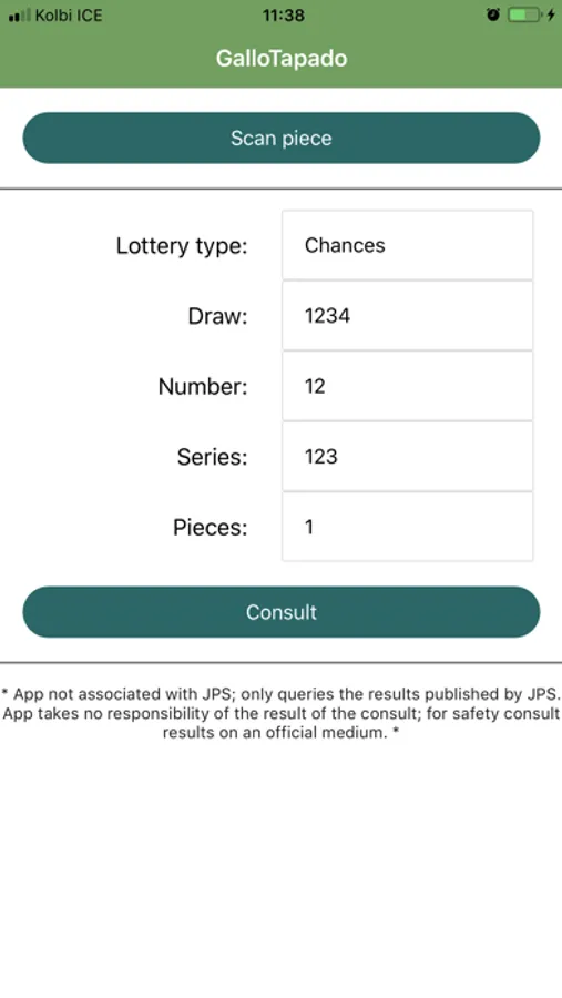 An app to check if your number is a winning number in JPS lottery or chances. You can manually add the lottery information or you can scan a piece to get the information. Also, you can receive notifications with the last draw results. Not associated with JPS.