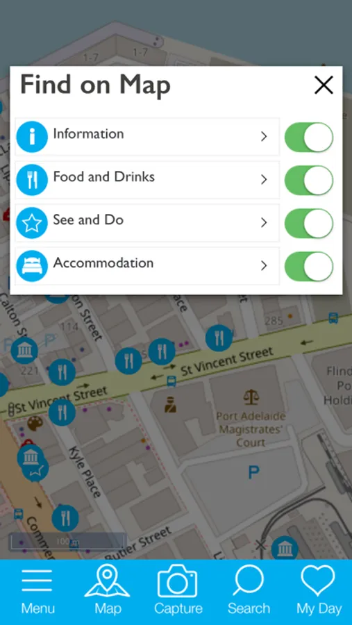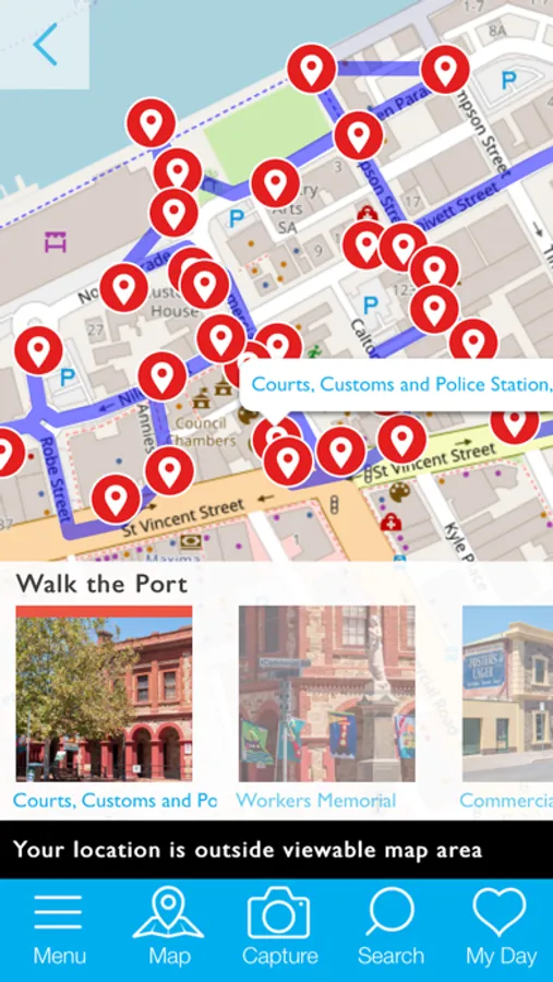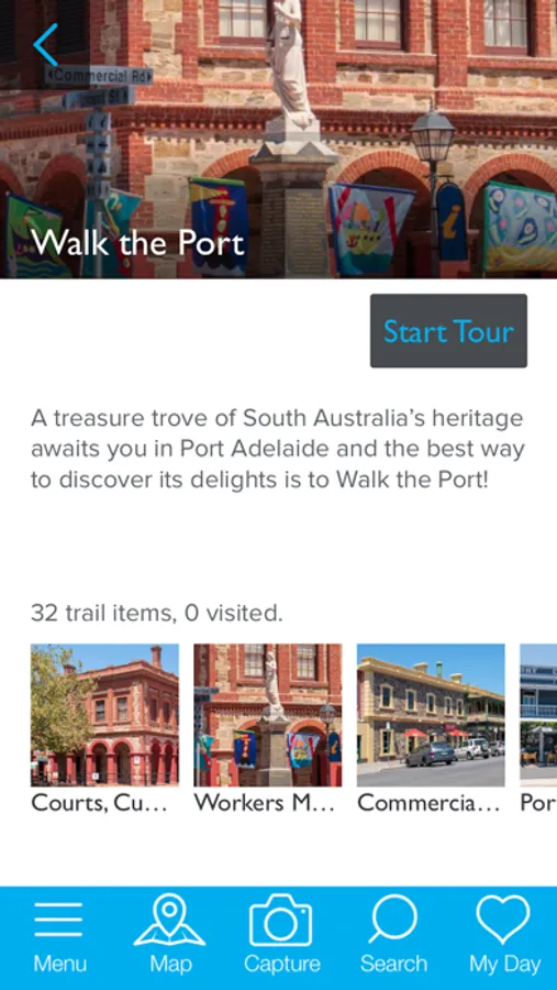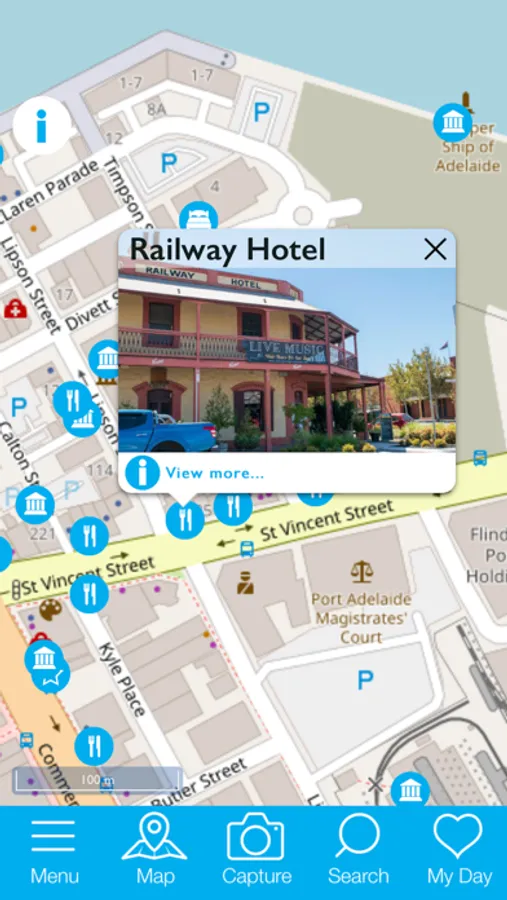This app provides navigation assistance for moving between tourist attractions within the precinct, guided trails with educational content about points of interest along the way and highlights local hot spots, such as the visitor centre on Commercial Road.