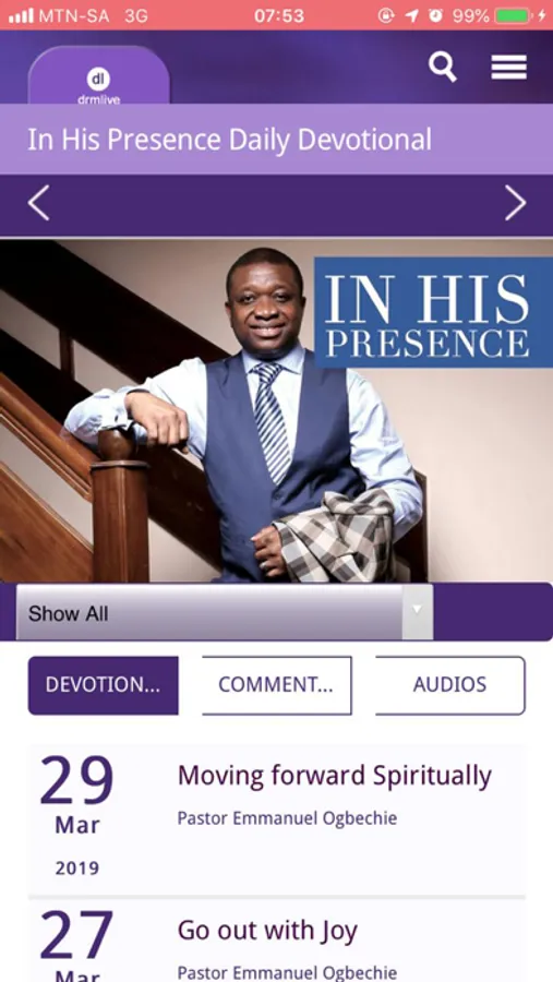 DRMLive brings you the teaching ministry of Pastor Emmanuel Ogbechie, Senior Pastor of Diplomats Assembly Church. Experience the undiluted word of God through the life transforming In His Presence Daily Devotional, Diplomats Radio and TV broadcasts, Mentoring Moments with Pastor ID and an access to life transforming Messages that are bound to catapult your spiritual life from the level of glory on which it is to a higher level of glory.