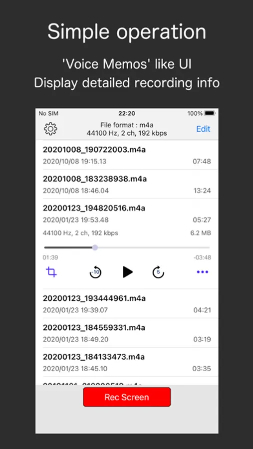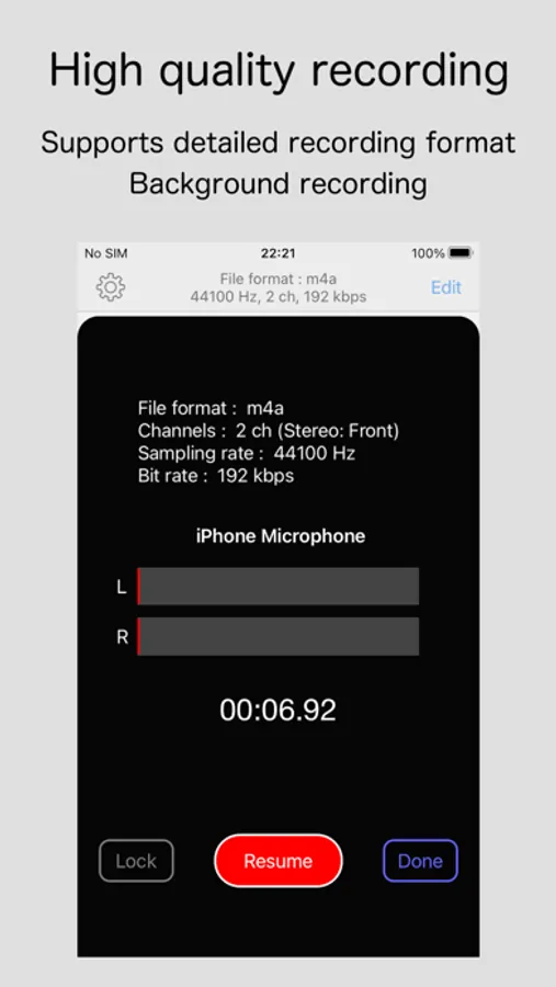 It is a recorder app developed in pursuit of simple operation, detailed recording format settings, enhancement of effects during playback.