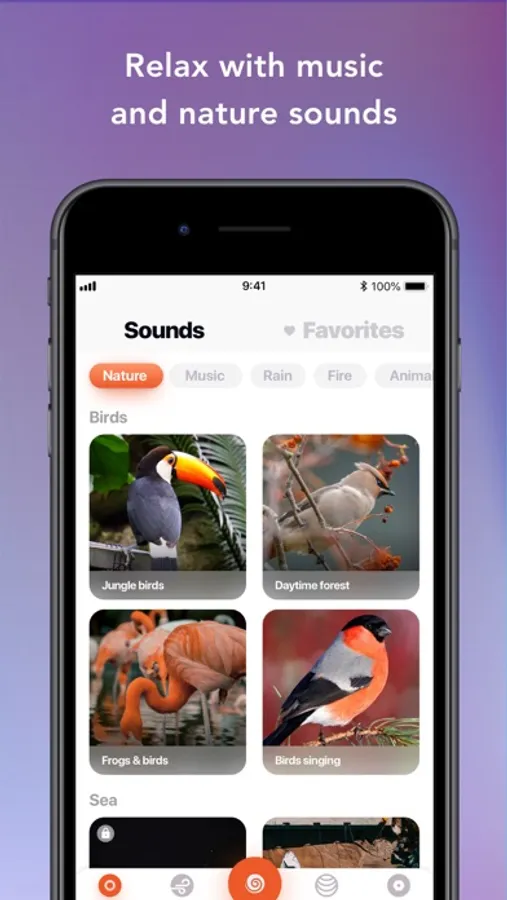 More than 180 soothing sounds of nature, birds, rain, fire, animals and many more. Enjoy relaxing melodies with full screen image or animation. You have a great possibility to create cool mixes. Select sounds that you like, adjust the volume and create a new original mix. Listen and enjoy sounds and meditations in background mode. Also, you can set the 5 min or 1 hour timer and enjoy your rest.
