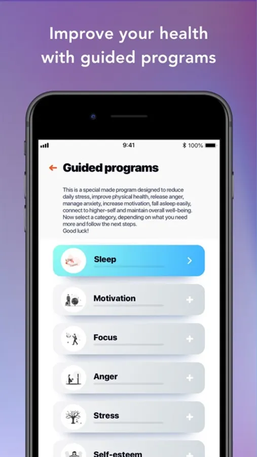Reduce daily stress or anger with relaxing nature sounds, meditations, guided programs and calming melodies.