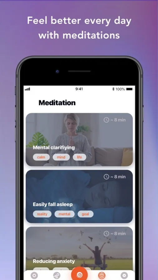 Special designed guided programs can help you in different situations. You can reduce daily stress, release anger, increase motivation, connect to higher-self. This program can help you to improve your physical health. You can analyze your daily results in statistics graphs. Everyday reminders will help you to do breath exercises or meditations. See all your done activities in History section.