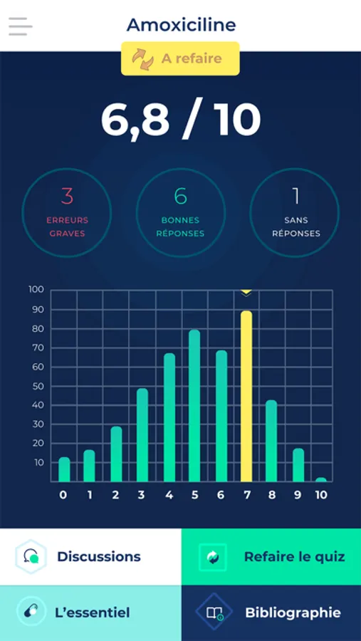 La durée moyenne pour répondre à un Quiz est de 3 minutes. Refaire les Quiz permet d'améliorer son score et de mémoriser l'essentiel sur les médicaments.