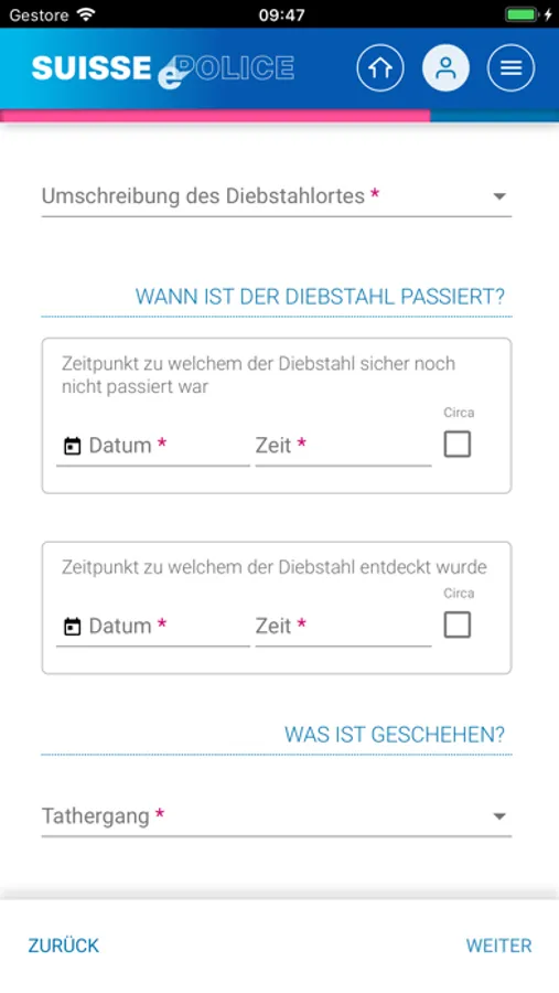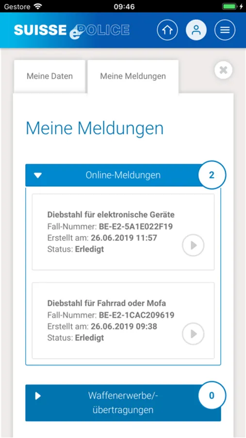 Mit einem leicht verständlichen Dialog werden Sie auf der App Suisse ePolice durch den Erfassungsprozess geführt. Alle von Ihnen verfassten Meldungen werden automatisch an das zuständige Polizeikorps weitergeleitet und können von Ihnen im PDF-Format heruntergeladen und für die Versicherung verwendet werden.