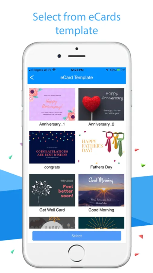 - Utilize professionally designed embedded eCard templates, accessible within the app, for both MMS and SMS purposes;