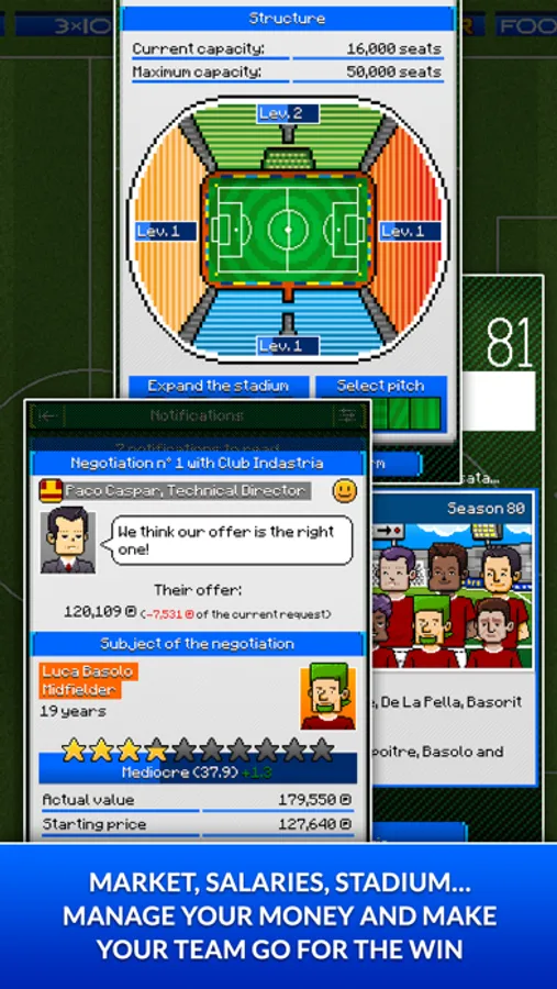 Manage the team, train the players, hire specialists and forge your champions of the future!