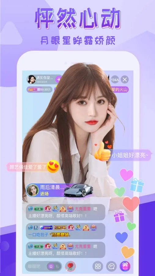 来互动: 送礼物,玩游戏,秀座驾,主播与你一起嗨到底