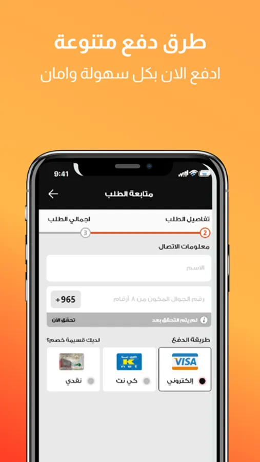 إمكانية تحديد الدفع عن الاستلام او التسليم .