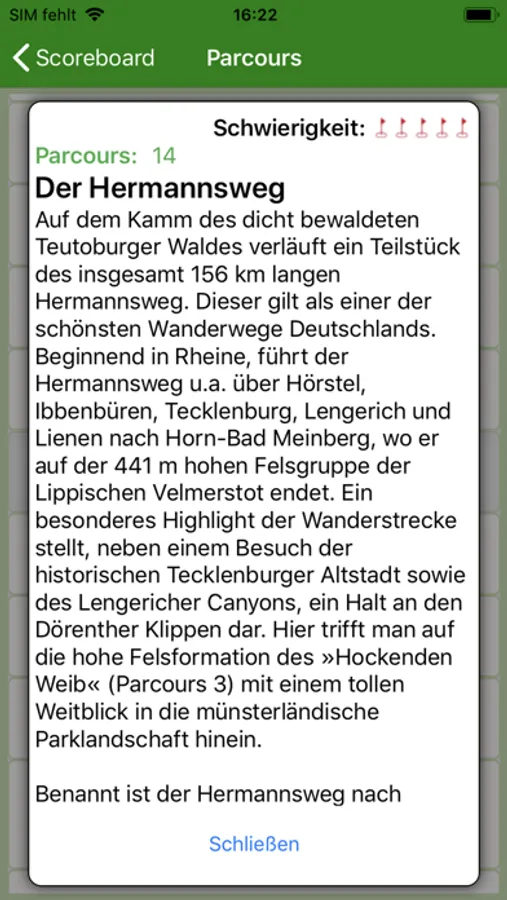 Die App dient dazu beim besuchen und benutzen des Abenteuergolfplatzes in Tecklenburg einfach und schnell die erreichten Punkte zu dokumentieren