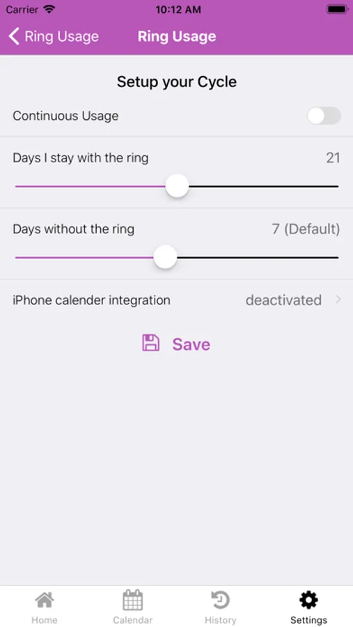 • Variable period duration: Enter the desired length of your ring usage and pause time yourself (recommended: usage of 21+7 days or 28 days)