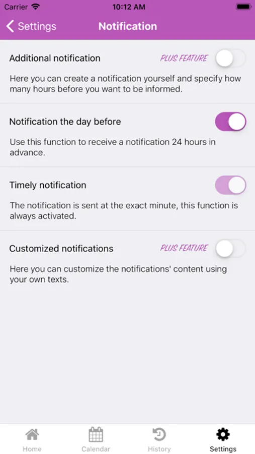 Here you can deactivate the notification you receive 24 hours before an action is required concerning the contraceptive ring
