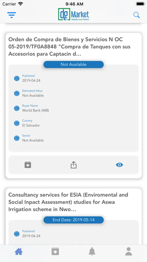 dgMarket Int. Inc. offers the most unique Tendering Experiences with the dgMarket Smart iOS Application.