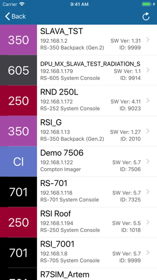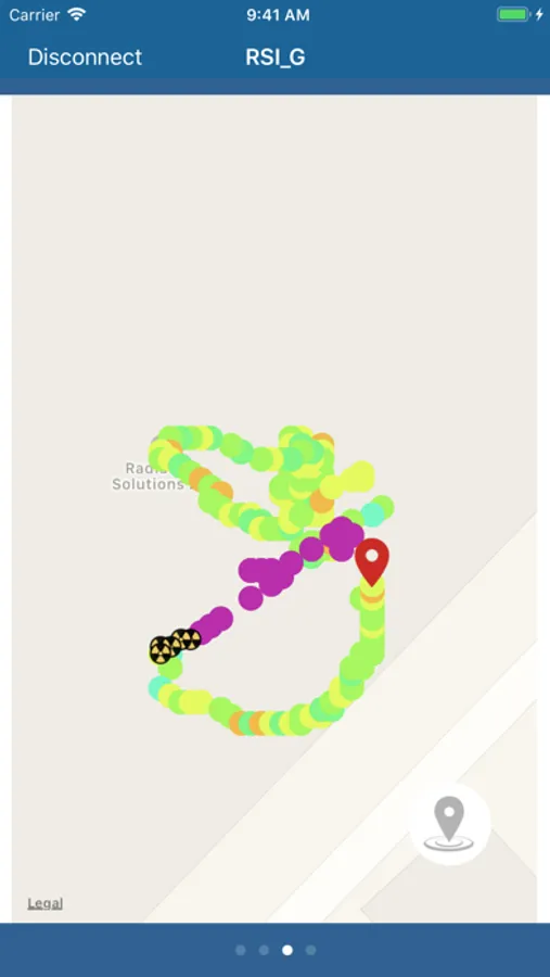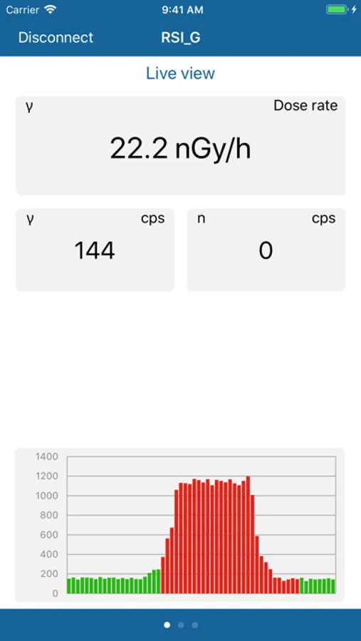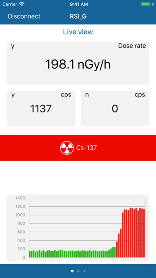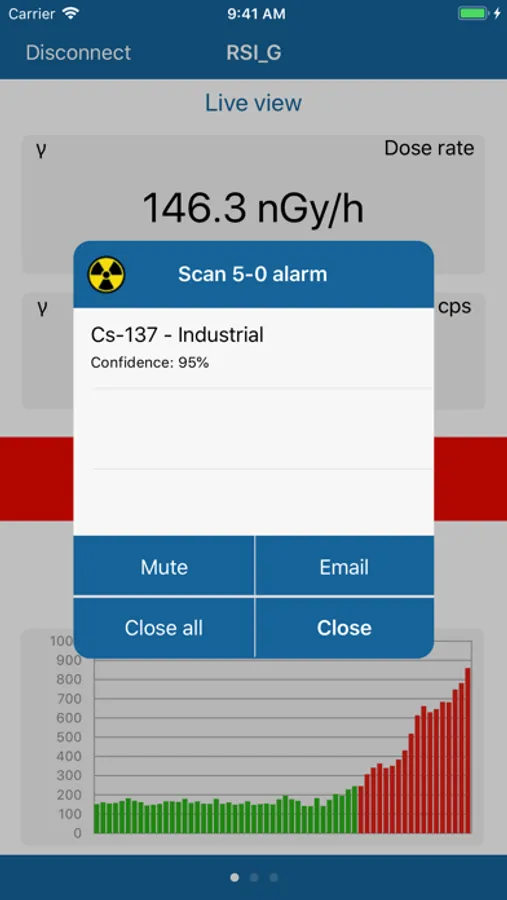 RadMobile app displays real-time radiation measurement information from gamma-ray and neutron detectors of directly connected RSI devices through Wi-Fi network, notifies immediately upon anomalous radiation activity and high radiation level detected providing the ability to user to send email reports with attached measurement data formatted according to IEEE N42 standard.