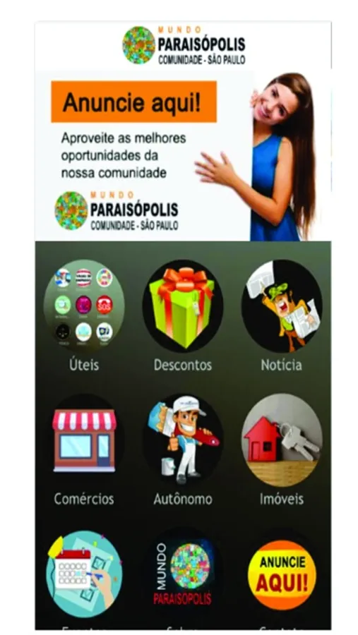 Ao baixar o aplicativo “MUNDO PARAISÓPOLIS” o usuário terá um mecanismo ágil e de fácil manuseio onde além de desfrutar de informações e conhecimentos da Comunidade, poderá também anunciar sua marca, produtos e serviços.