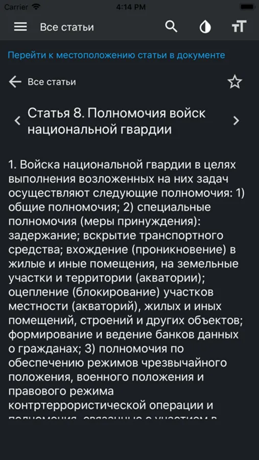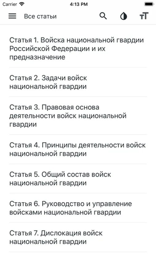 Перелистывание между статьями вправо-влево, аналогично разделы и главы