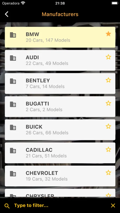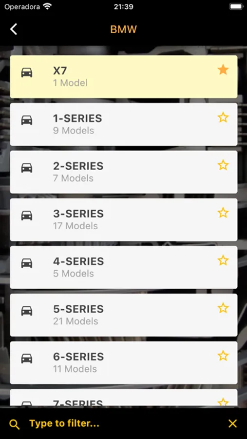 • Provides the Type and Model of each vehicle, organized in the catalog;