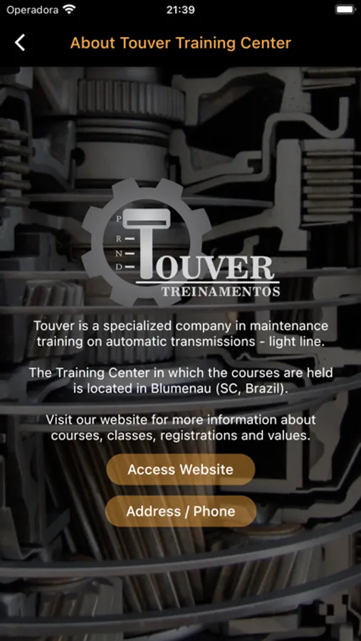 Touver is a specialized company in maintenance training on automatic transmissions - light line. The Training Center in which the courses are held is located in Blumenau (SC, Brazil).