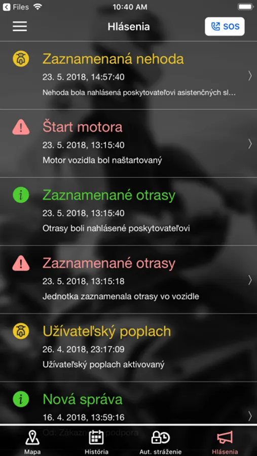 - Privolanie pomoci pomocou tlačidla priamo v aplikácii
