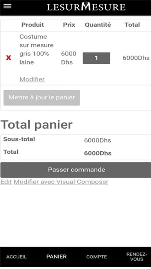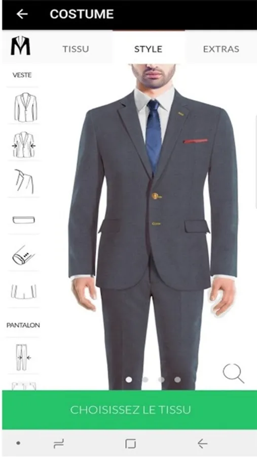 Commencez à personnaliser votre commande. Avec LesurMesure dans votre poche, vos vêtements sont toujours à portée de main!