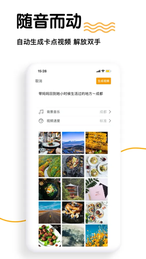 批量倒入照片,选中喜爱的音乐,一键生成喜欢的音乐故事集。极致简单