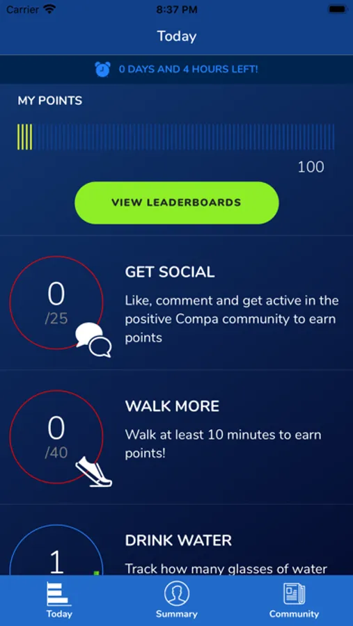 Compa is a personal health app that incentivizes users to engage in their own health by competing with other users for prizes. Using activity data from HealthKit, users can are scored on the most accurate step data. The competition is comprised of diet, physical activity, social interaction where users are scored on their engagement levels. Users can exchange their points for prizes.
