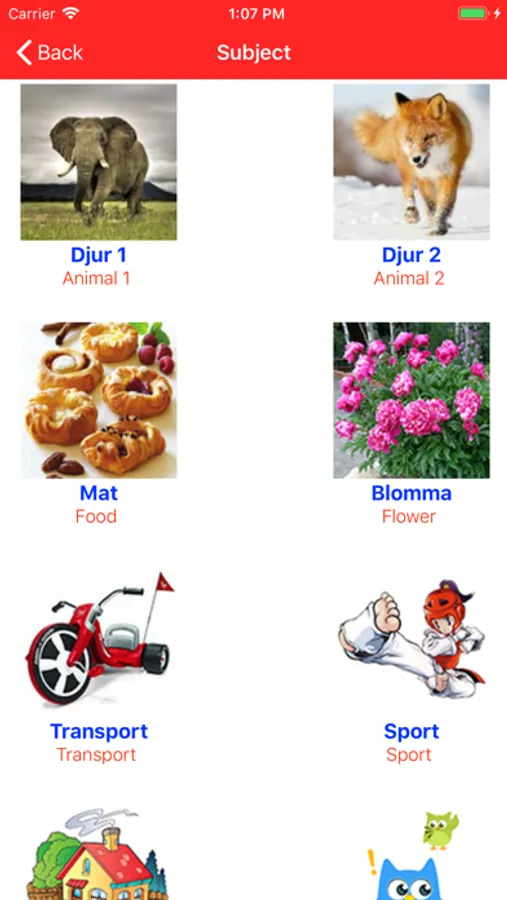Learn Swedish free vocabulary has 28 topics which are around beginner real life, 694 words vocabulary with sound and images of them . You can use all of them without network, it’s free.