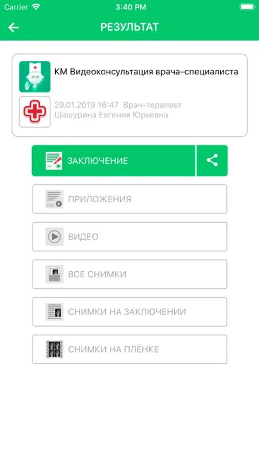 ● просмотр результатов медицинских исследований: заключений, снимков, видео;