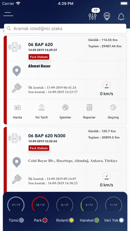 Araçlarınıza ait gün sonu özet raporu, geçmiş izleme ve km detay raporu gibi raporlar ile aşırı hız alarmı, kontak açılış/ kapanış alarmı ve çekilme alarmı gibi bir çok alarma tüm platformlardan kolay ve hızlı bir şekilde ulaşabilir, anlık düzenlemelerde bulunabilirsiniz.