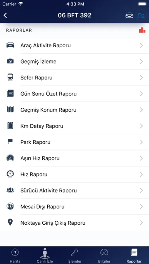 N2Mobil araç takip sistemleri uygulamasıyla sistemde kayıtlı olan araçlarınıza tüm platformlardan tek uygulama üzerinden ulaşabilirsiniz.