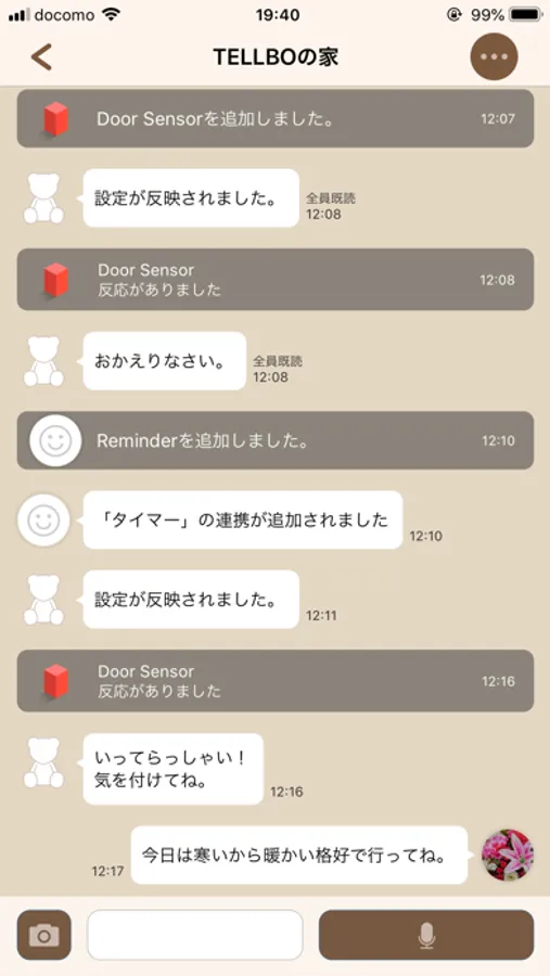 開閉した時にTELLBOがお知らせすると共に、スマホへ