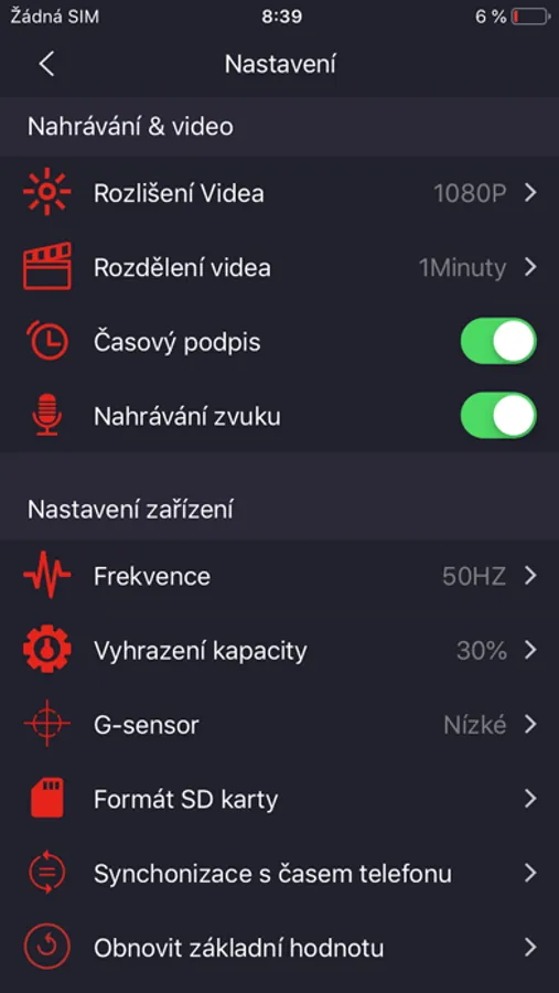 Stáhněte si naši aplikaci a po připojení kamery můžete nastavovat různé vlastnosti kamery. Díky přehledným ikonám můžete zapínat a vypínat nahrávání nebo pořizovat fotografie. Mimo jiné můžete volit různou délku a kvalitu videozáznamu nebo kvalitu fotografií. Libovolně a dle vašich potřeb je možné měnit SSID jméno kamery, heslo a další vlastnosti. Aplikace vám umožní stahovat videa a fotografie přímo do vašeho mobilního zařízení. K aplikaci je vytvořen videonávod, který vám usnadní připojení kamery a používání aplikace.