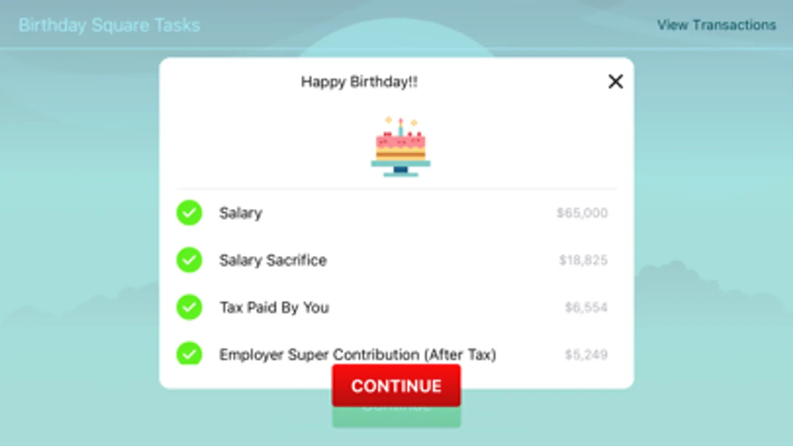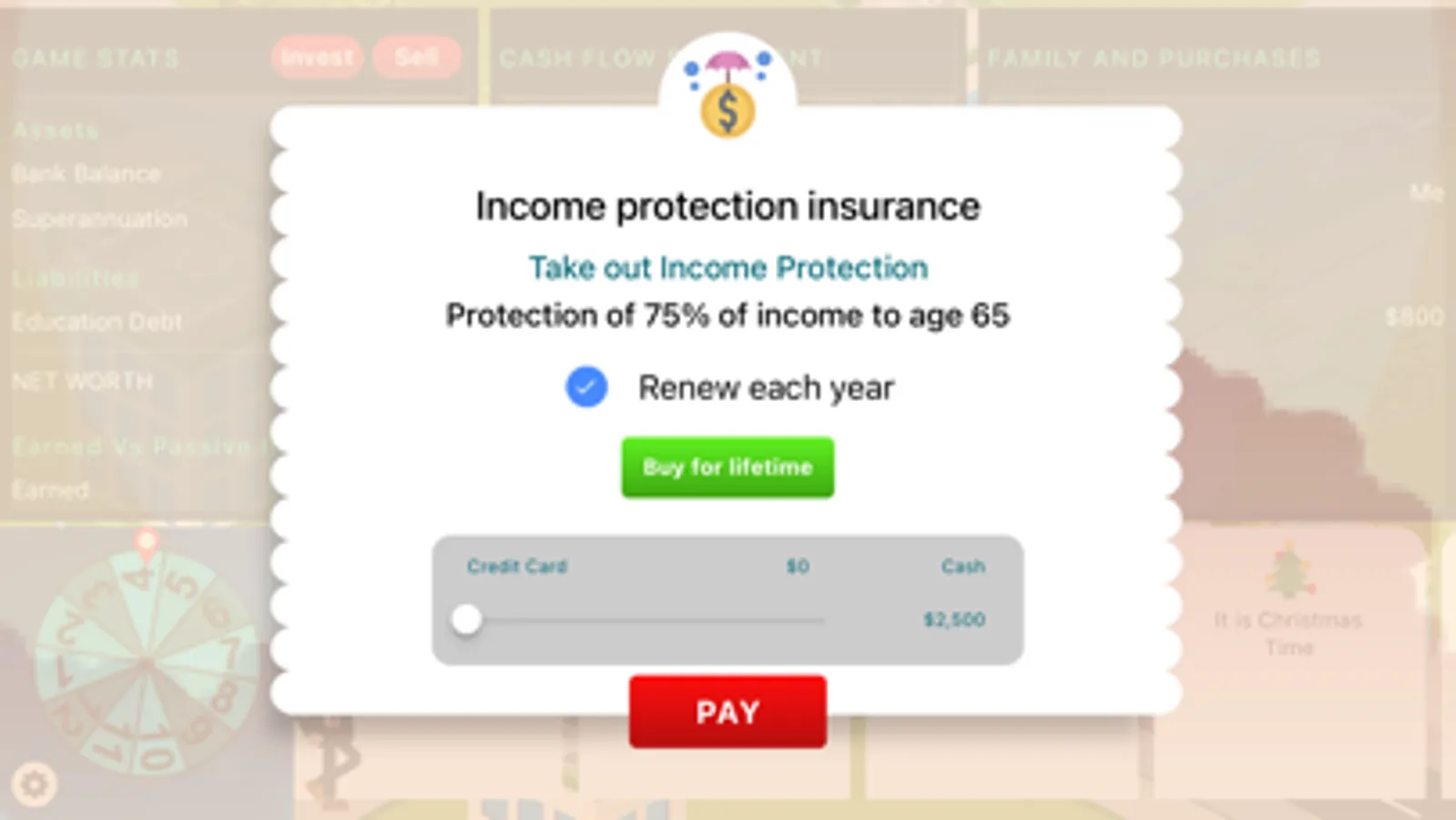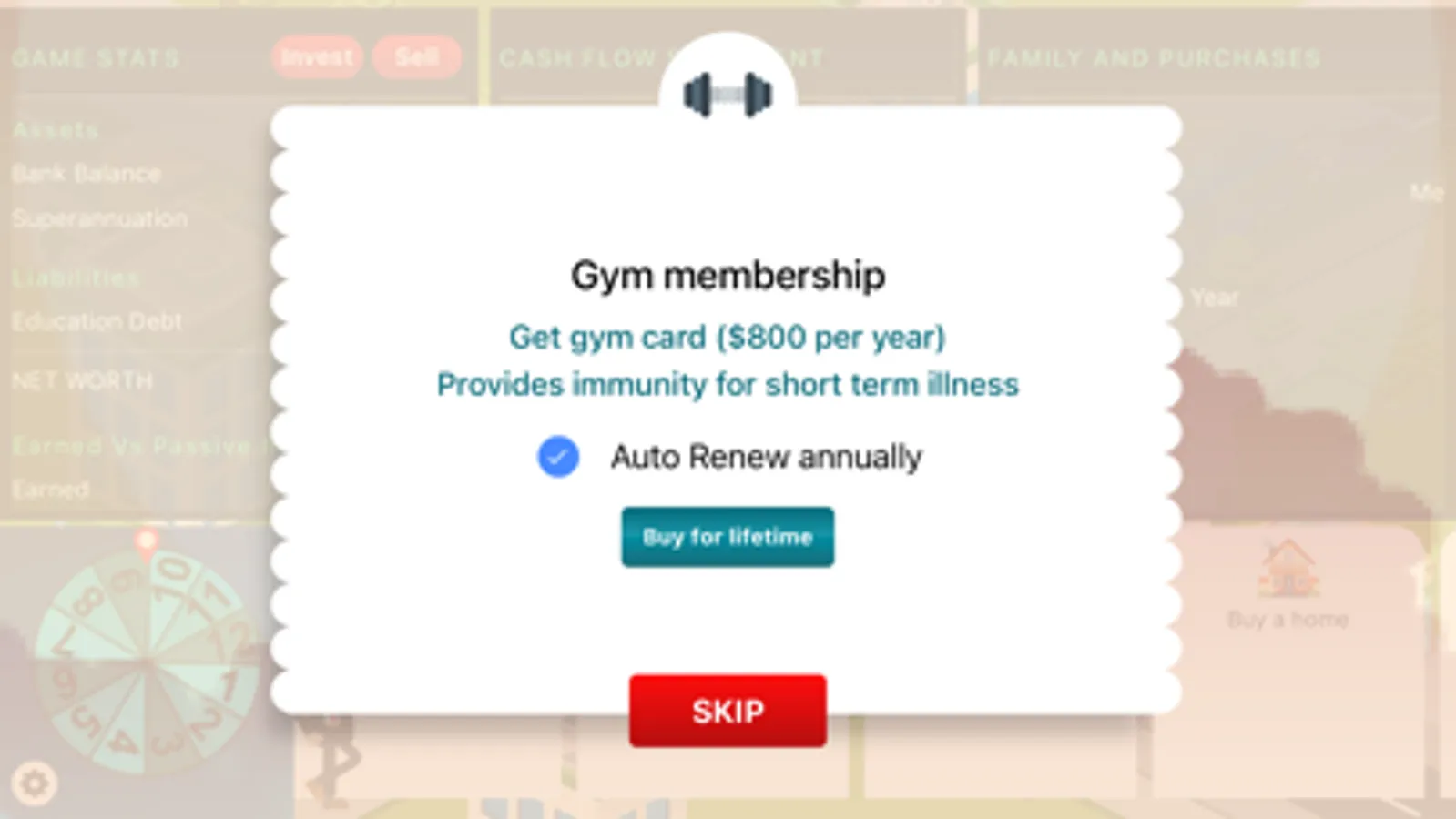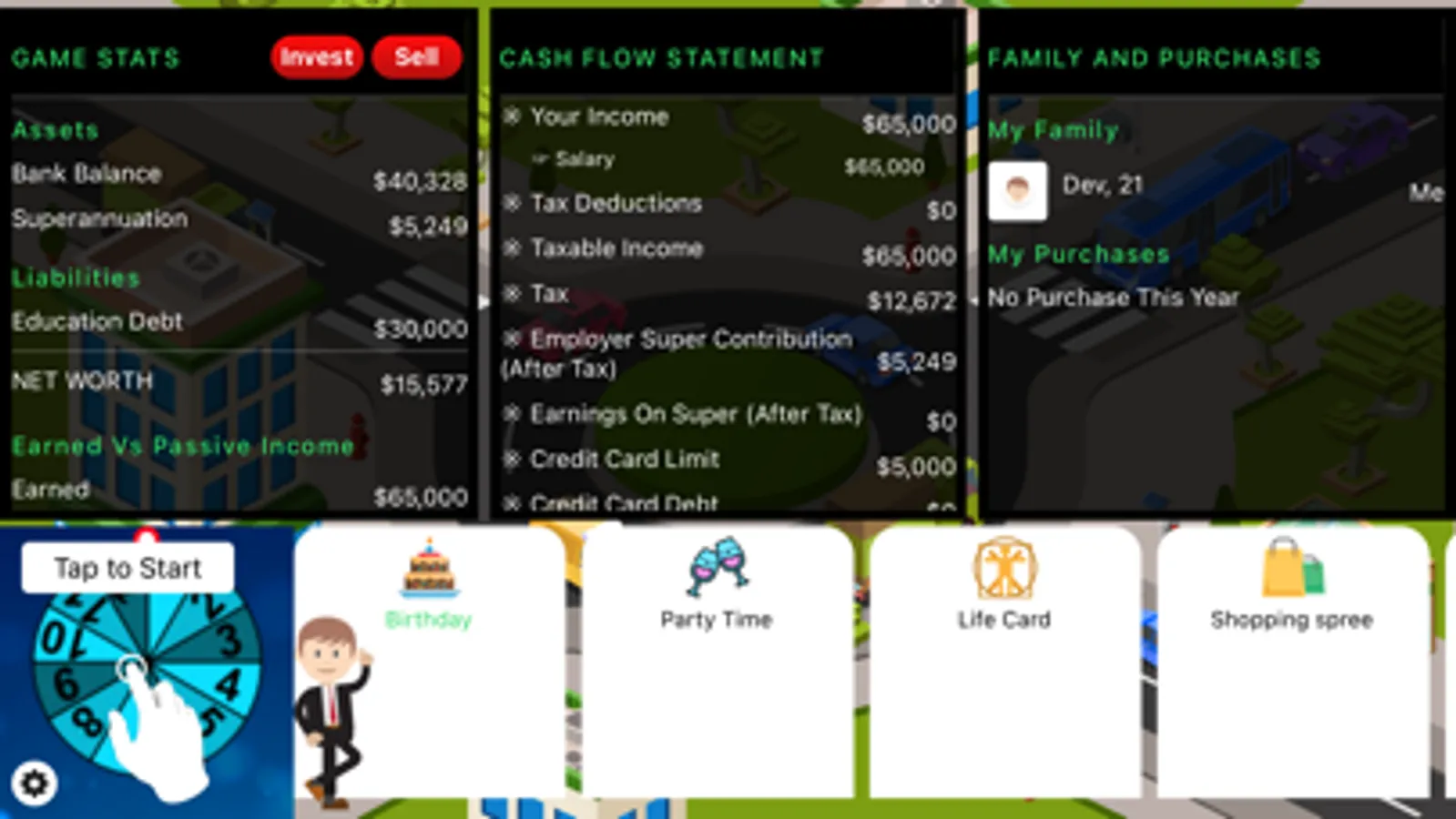simulator board game in which you select a starting salary and progress along