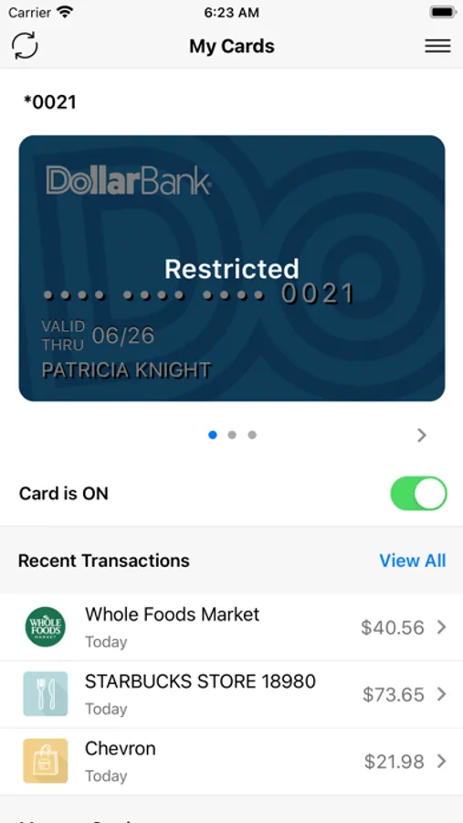 Keep your Dollar Bank credit and debit cards safe with Dollar Bank Card Control. With this app, you can easily set up alerts and controls to conveniently manage and protect your cards.