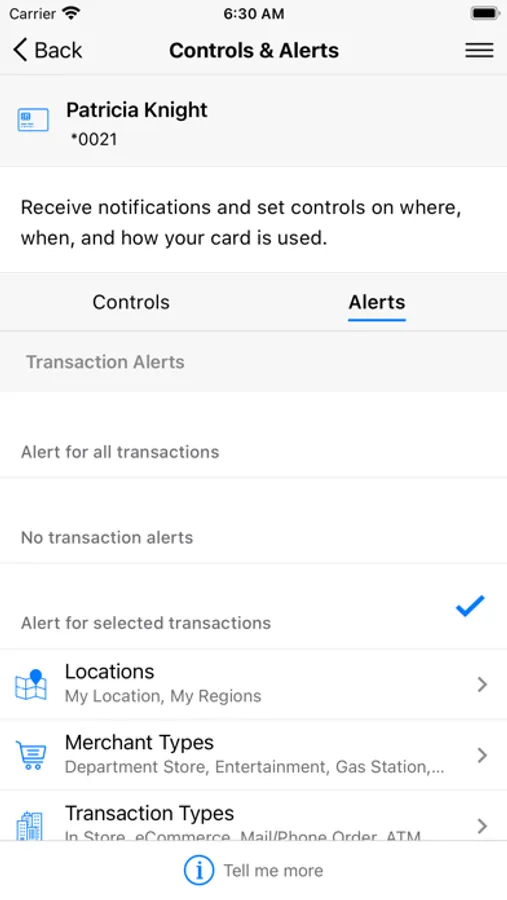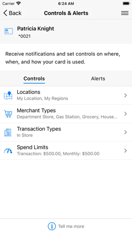 • Create spending limits to decline transactions above your set thresholds.